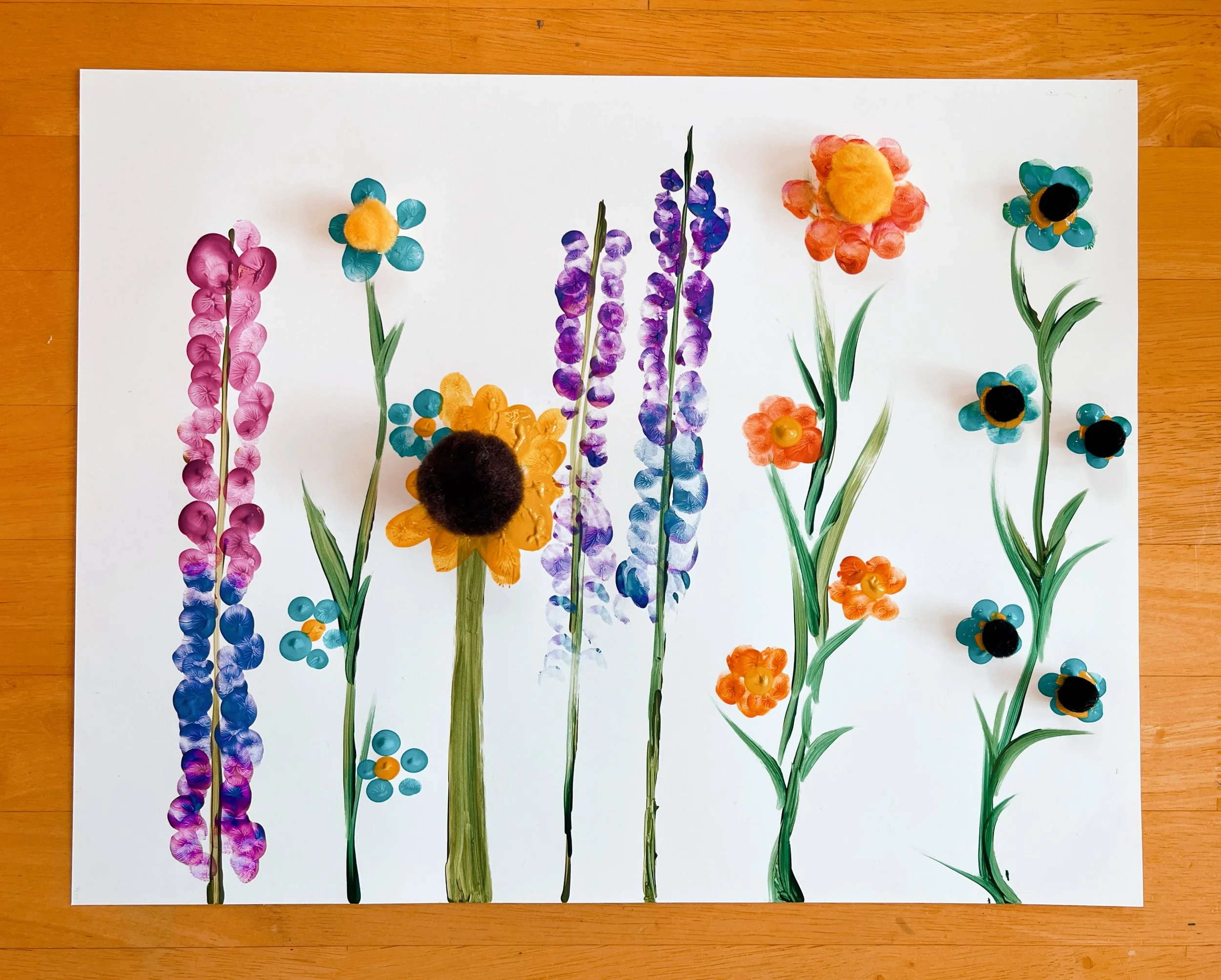 Spring has sprung! What a wonderful time to get your hands messy and create a colorful collage of painted flowers.