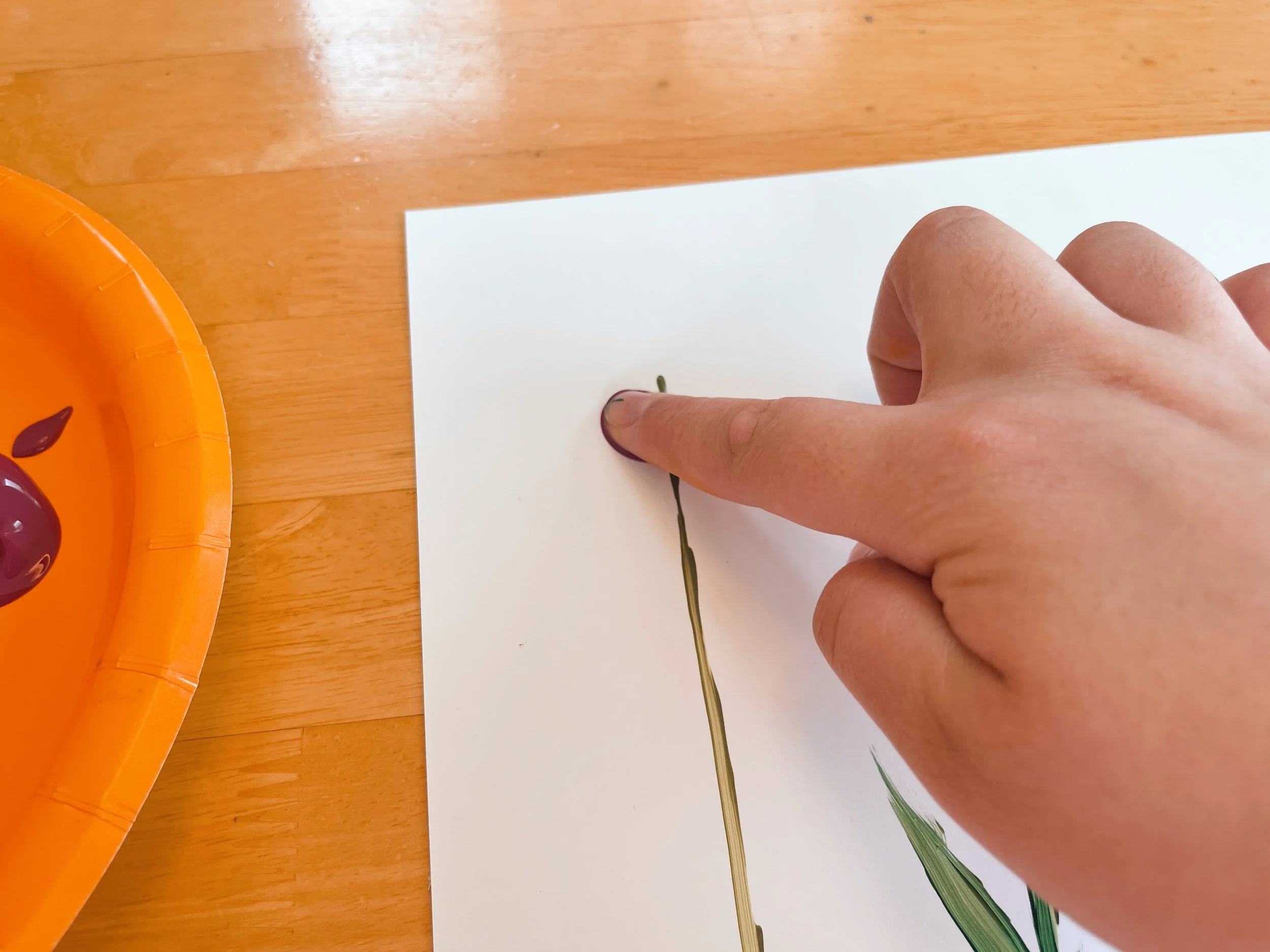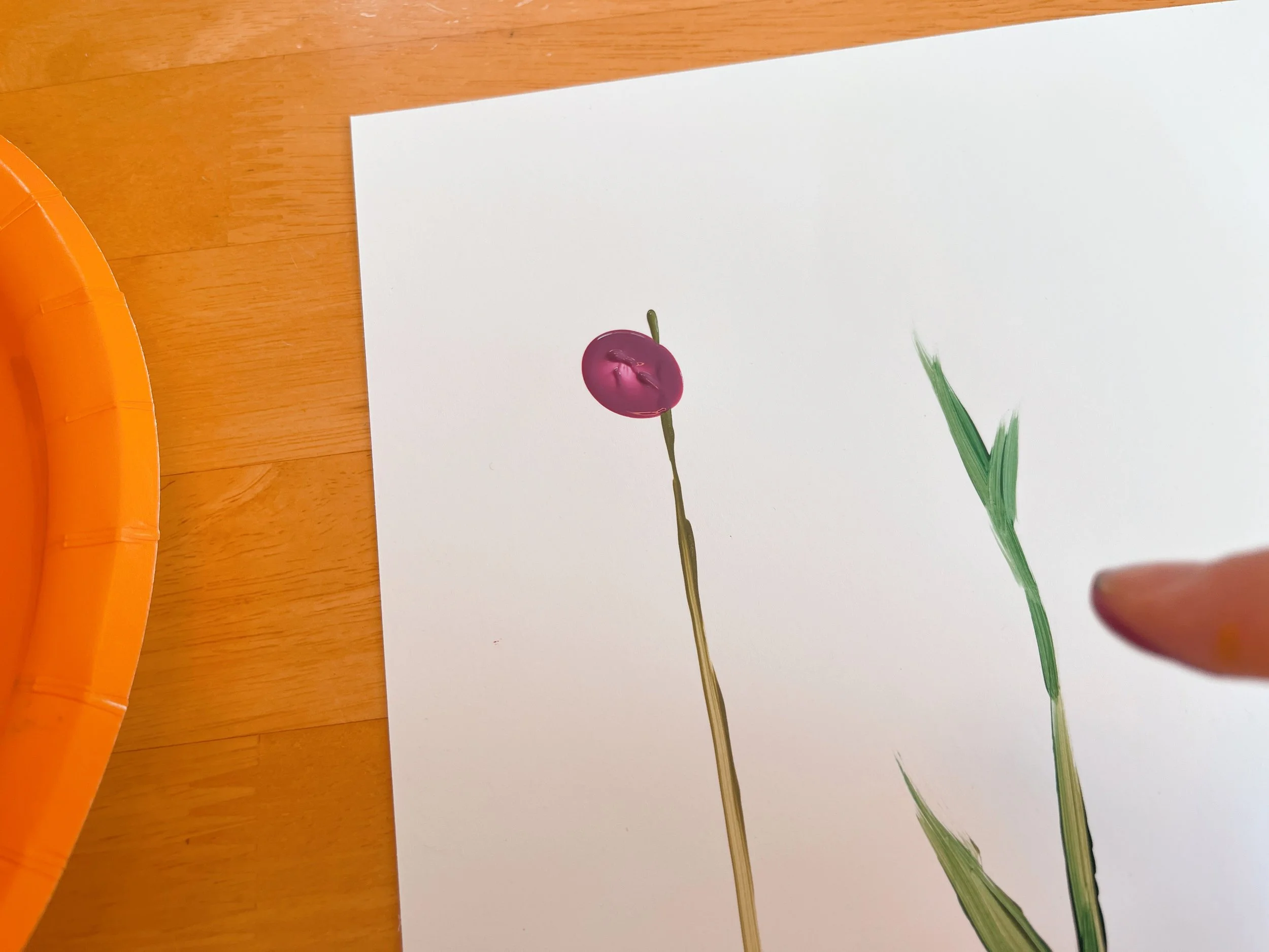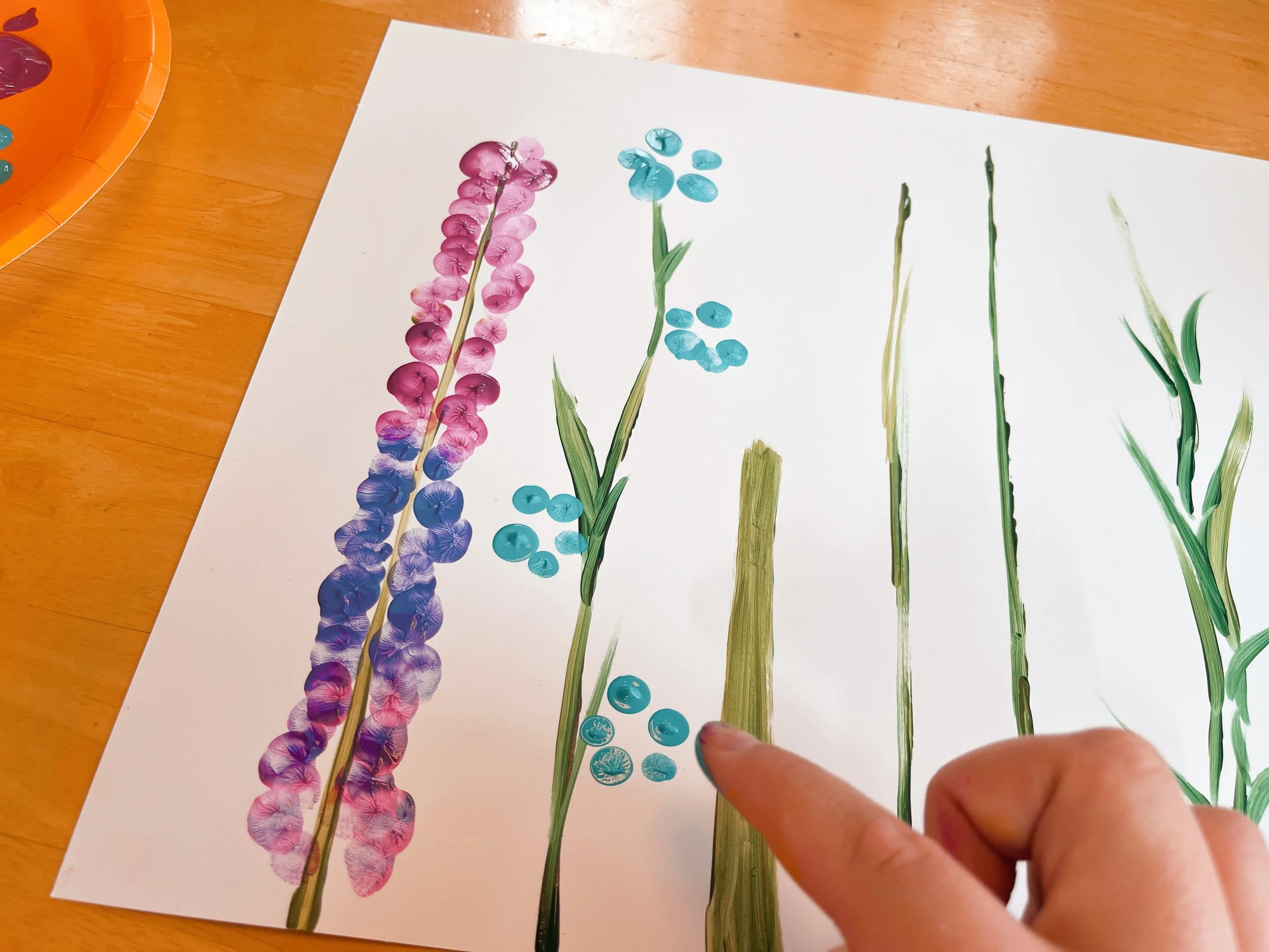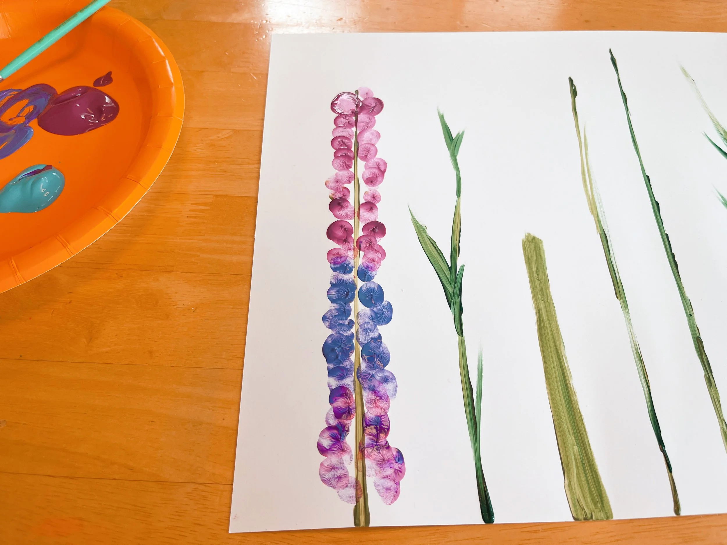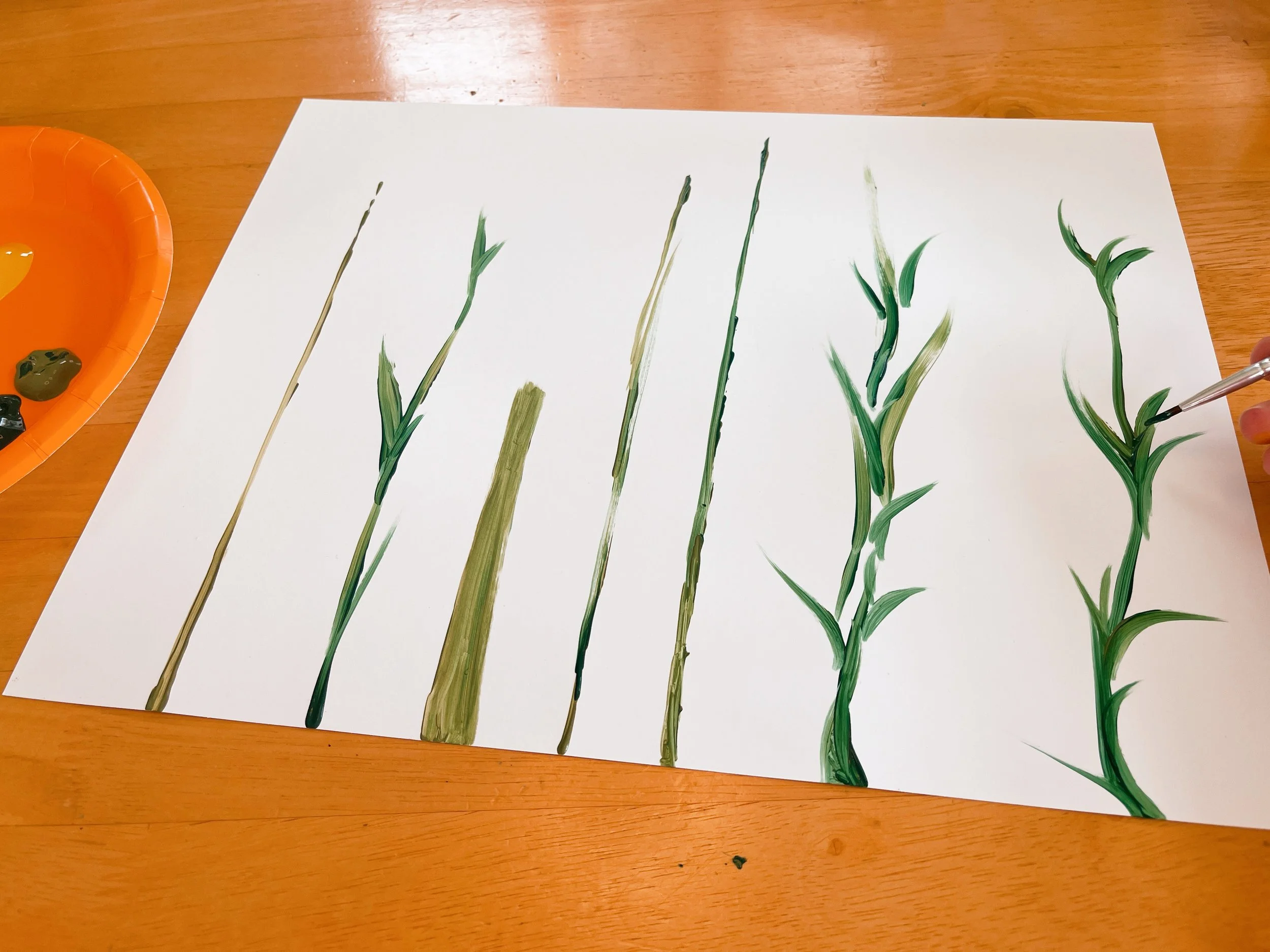 The first step is to paint stems for your flowers. Experimenting with all different shades of green is fun.