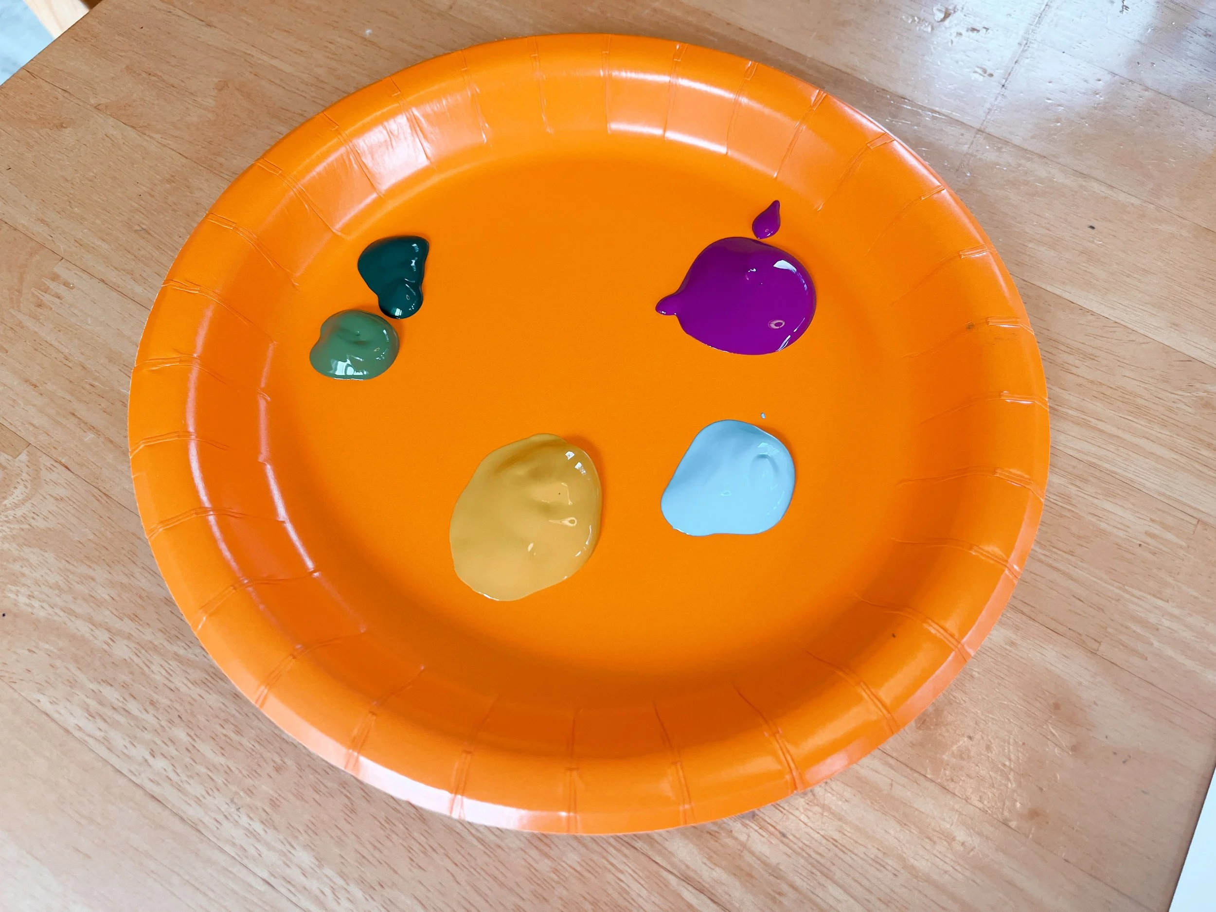 Kids may be able to do this step themselves, but prepping the paint beforehand on a plate for them will reduce waste and mess.