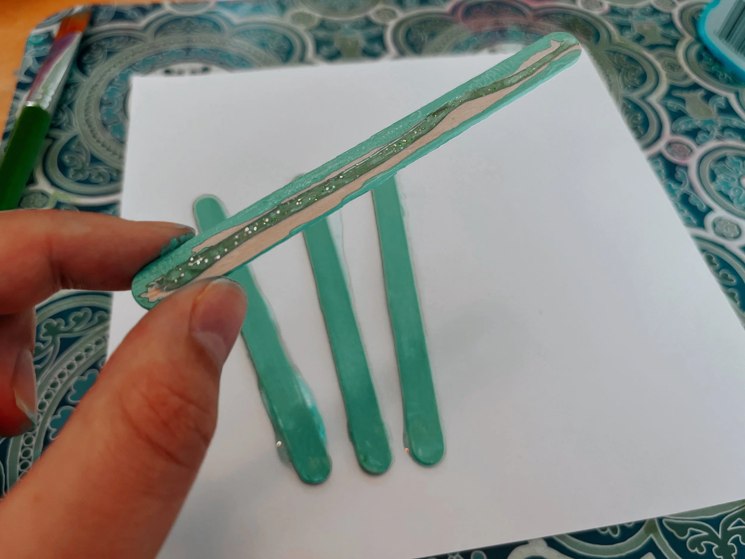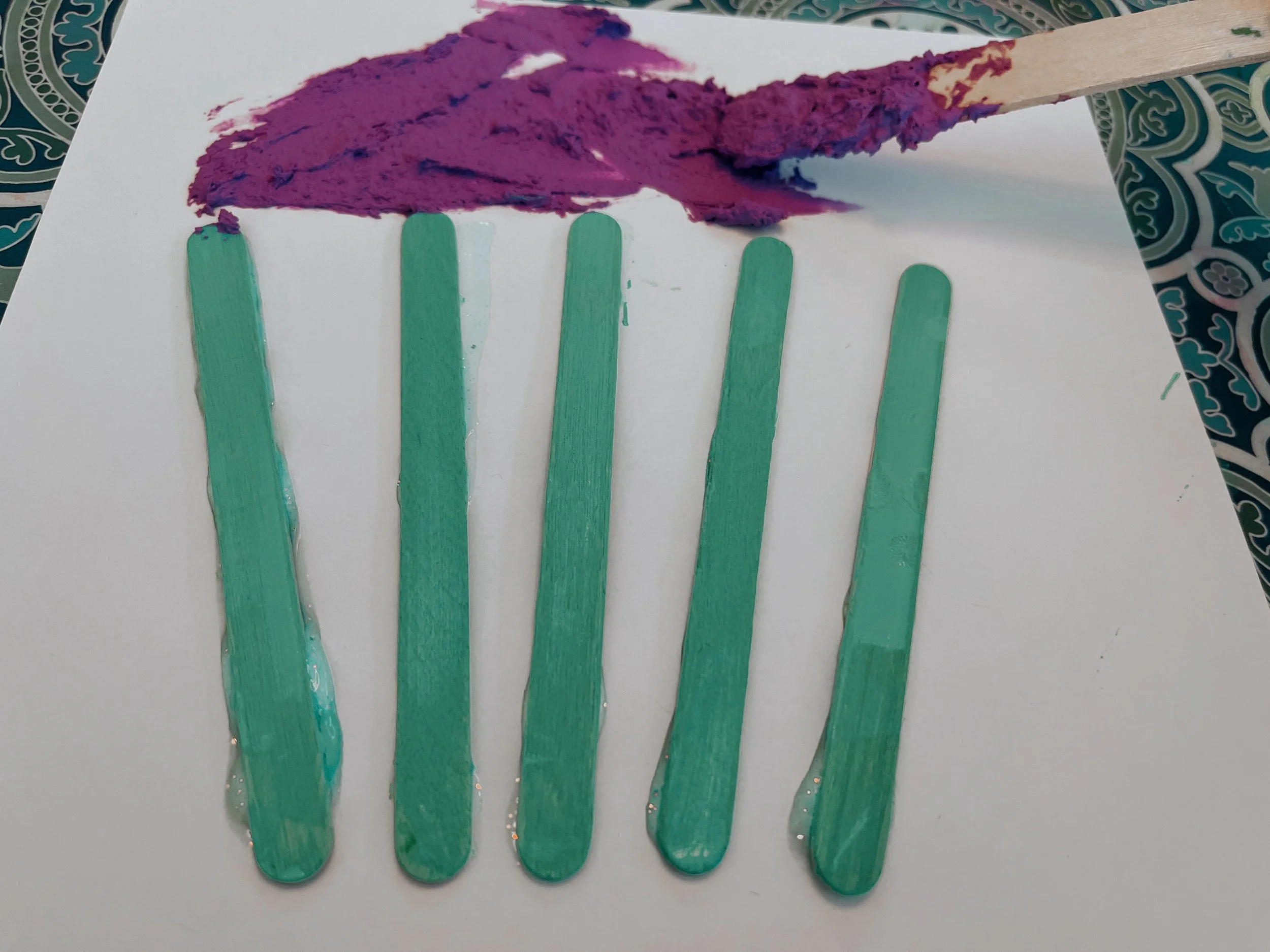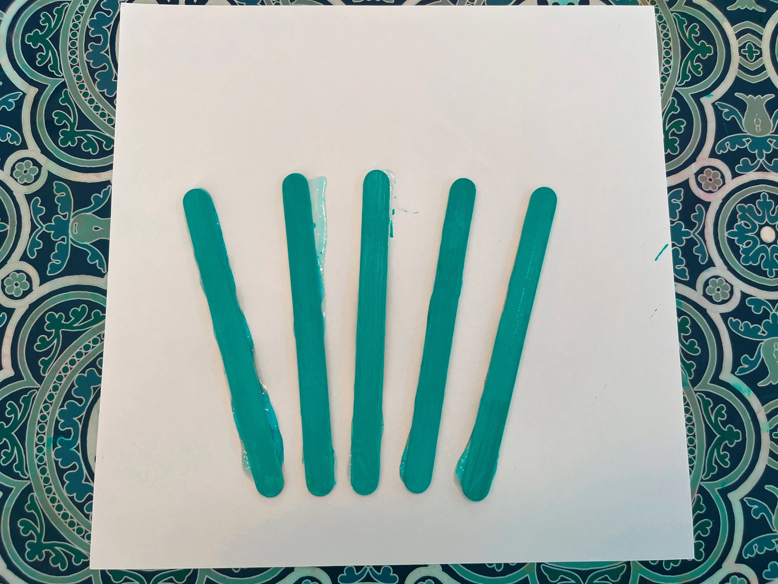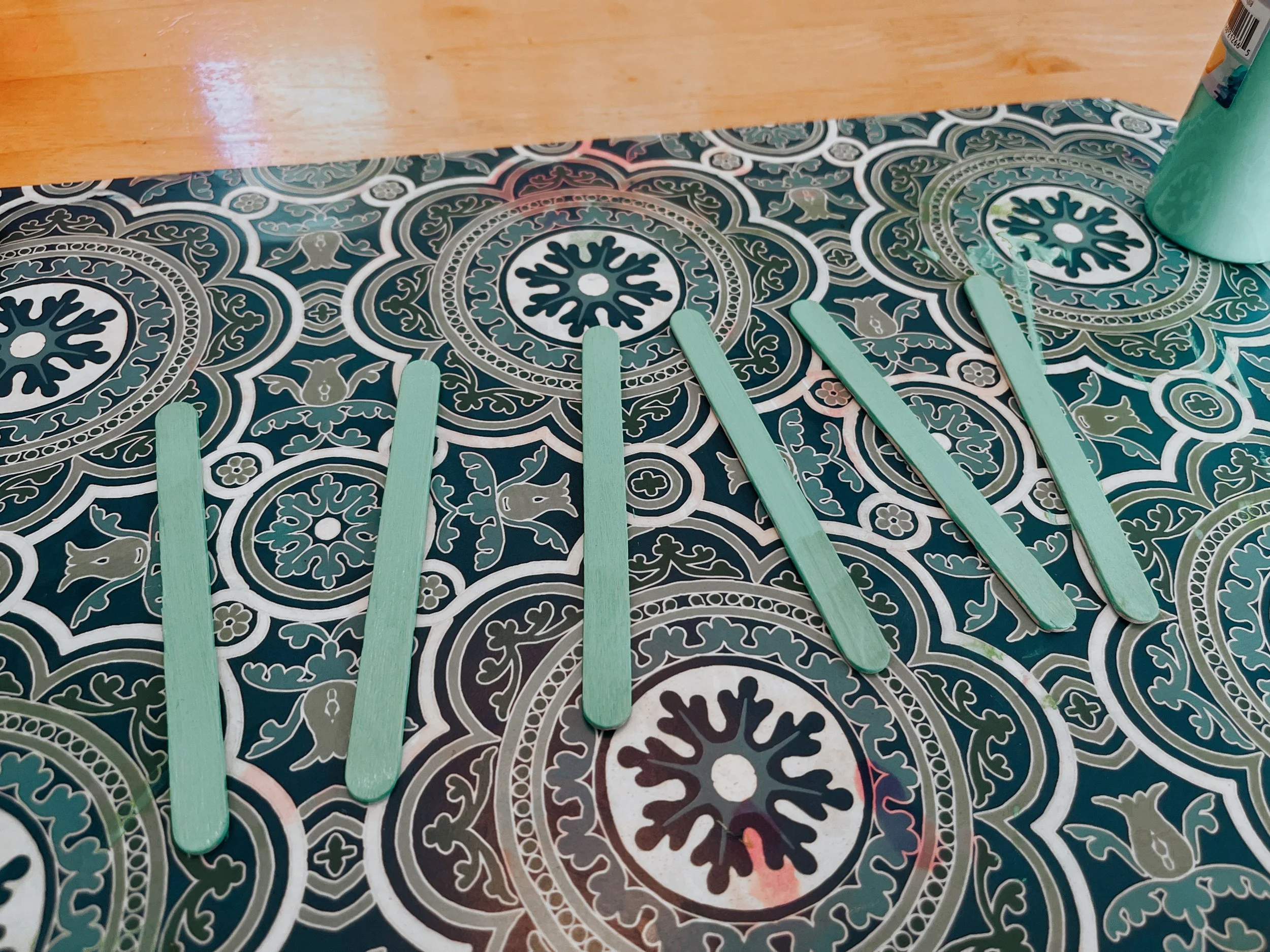 Lay out the popsicle sticks to paint.