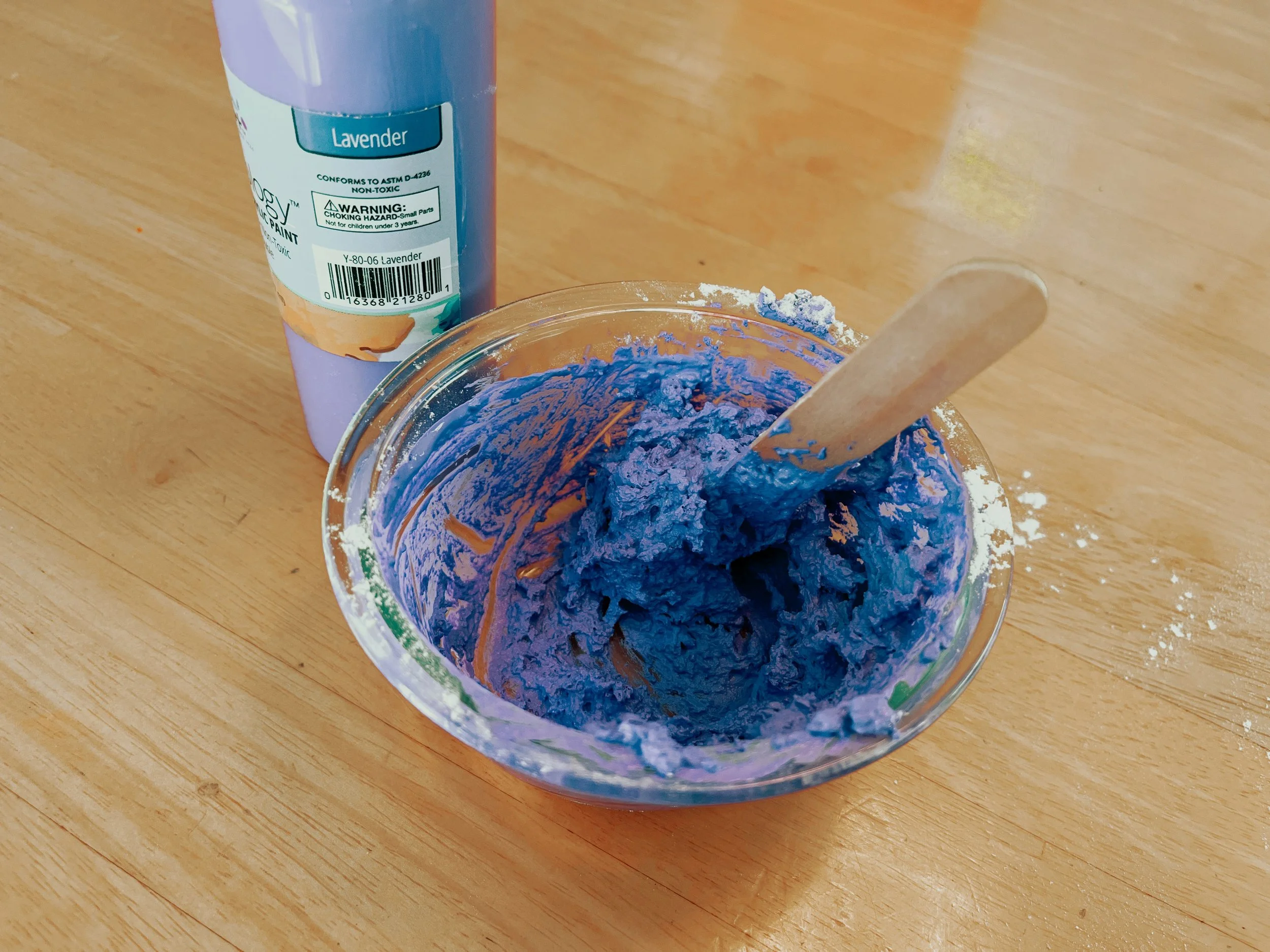 Add paint and mix to make the “frosting". Add more paint if the mixture is too thick to mix together.