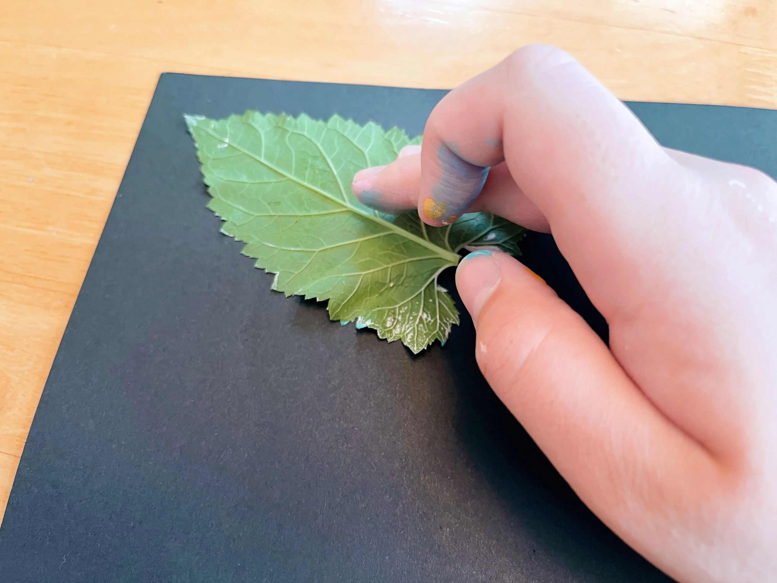 Paint all of the leaves with a thin coat of paint. Ensure that the whole leaf is covered!