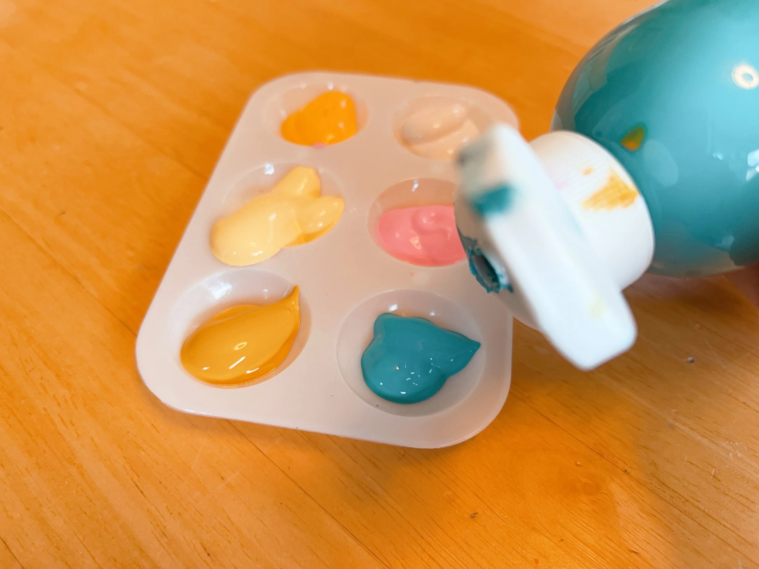 Pour some paint out for your little one on a palette or paper plate. This will be easier for the kids when painting the leaves.