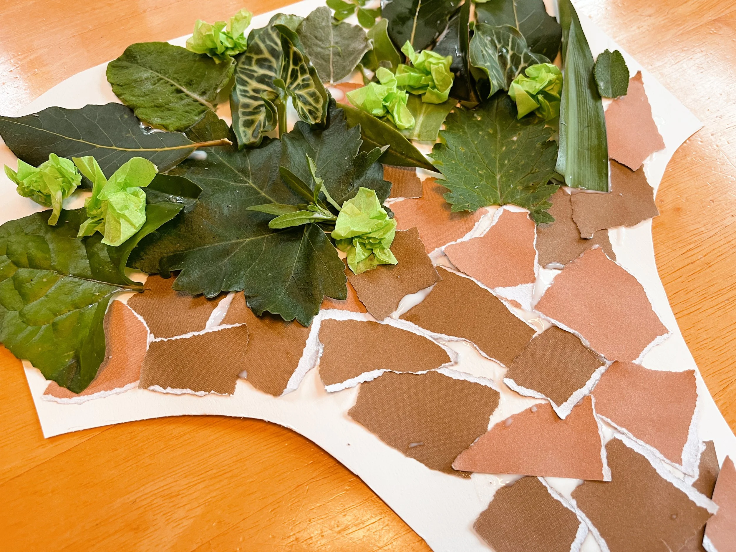 Then the leaves are placed onto the top of the paper, where the tree-top is.