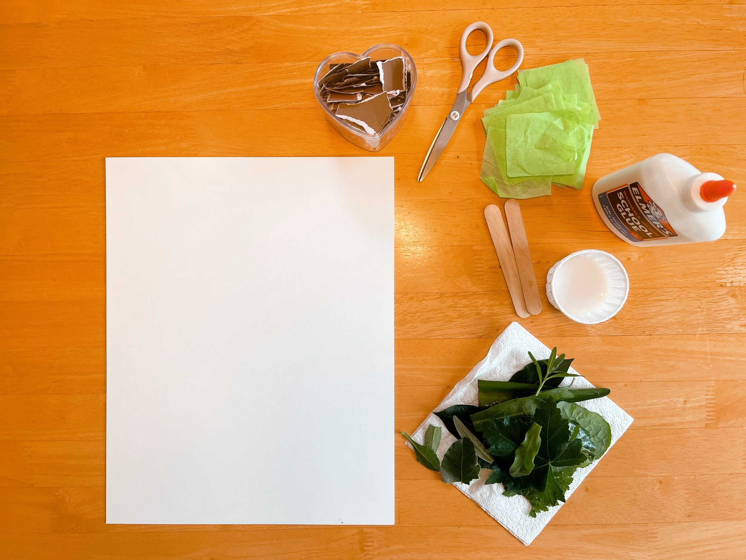 Optional!: Crumple up small pieces of green tissue paper and dip them into the glue.